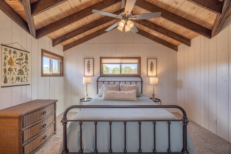 • Private primary bedroom on the main level with 1 king bed and a private entrance to the main level full bathroom.