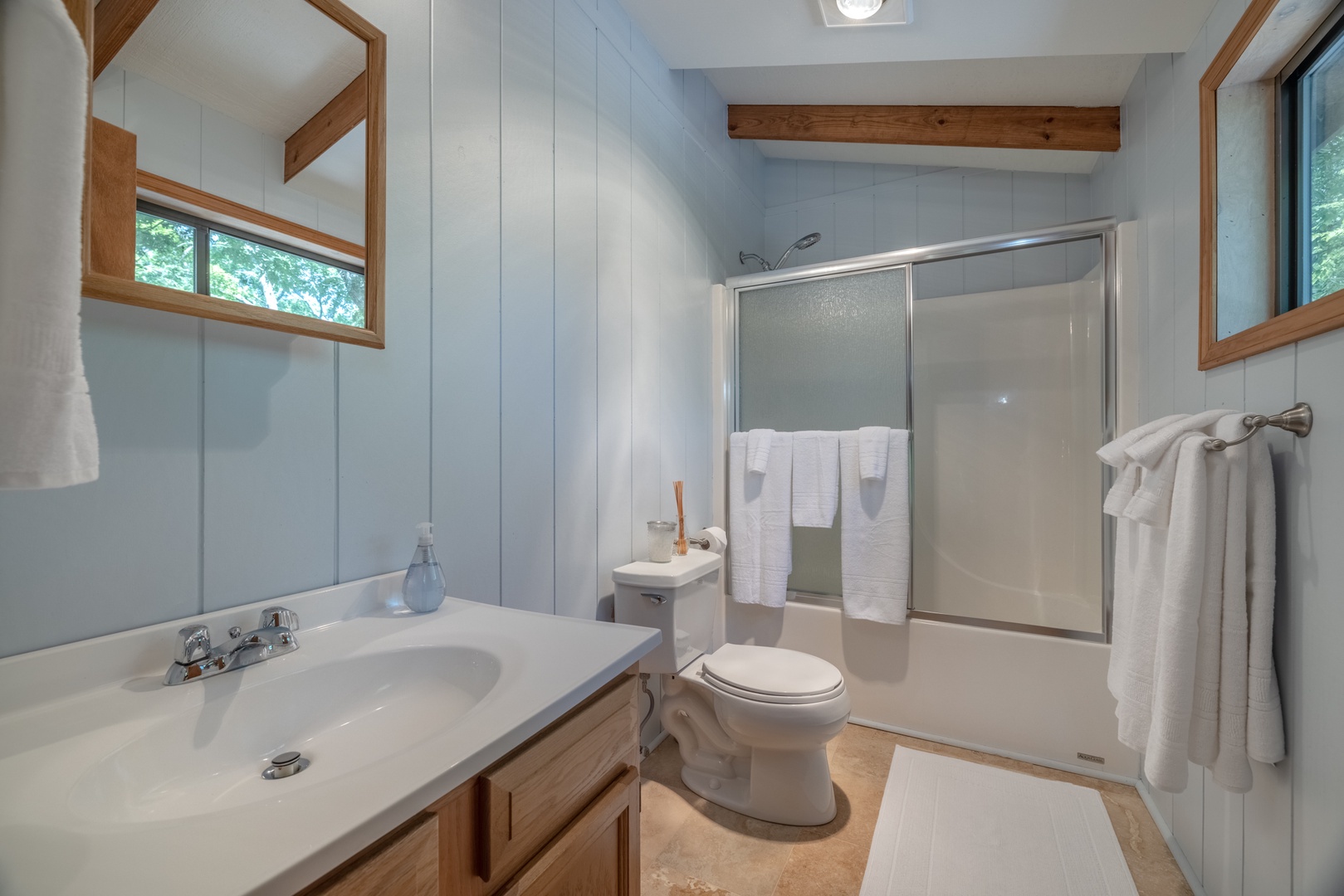 • Upstairs, two additional bedrooms, loft living area, smart TV, and full bath provides space for extra guests.